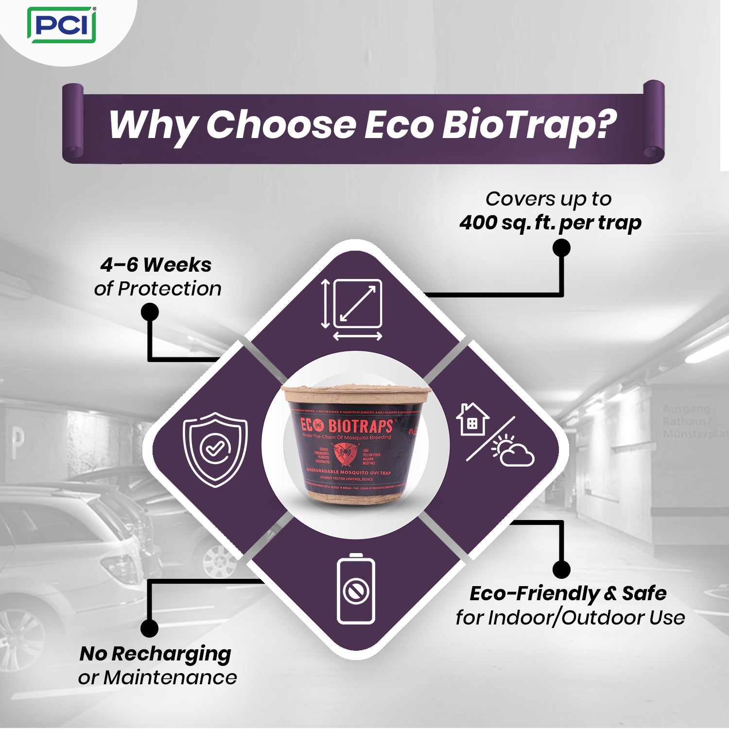 Eco BioTraps is a safe, eco-friendly mosquito control solution that breaks the breeding cycle without chemicals, electricity, or odors. Simply add water, place the trap in a shaded area, and let it work for up to 30 days. The natural attractant lures female mosquitoes to lay eggs, while the formula prevents larvae from developing. Ideal for indoor and outdoor use. Safe for children, pets, and the environment.