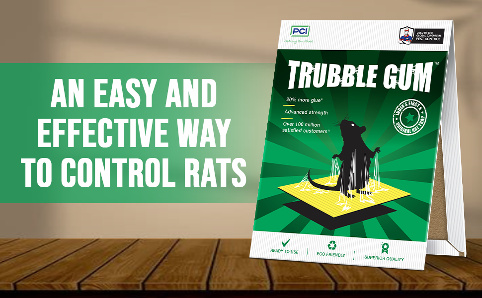 PCI Trubble Gum is a ready-to-use sticky glue trap designed to help control rat and mouse movement indoors in a simple and effective way. Just place the trap along common rodent pathways such as corners, walls, or under storage areas. With 20% more glue and advanced strength, it ensures better hold and reliable trapping. Trusted by over 100 million satisfied customers, Trubble Gum offers an eco-friendly and chemical-free solution for maintaining cleaner, safer spaces in homes, shops, and workplaces.
