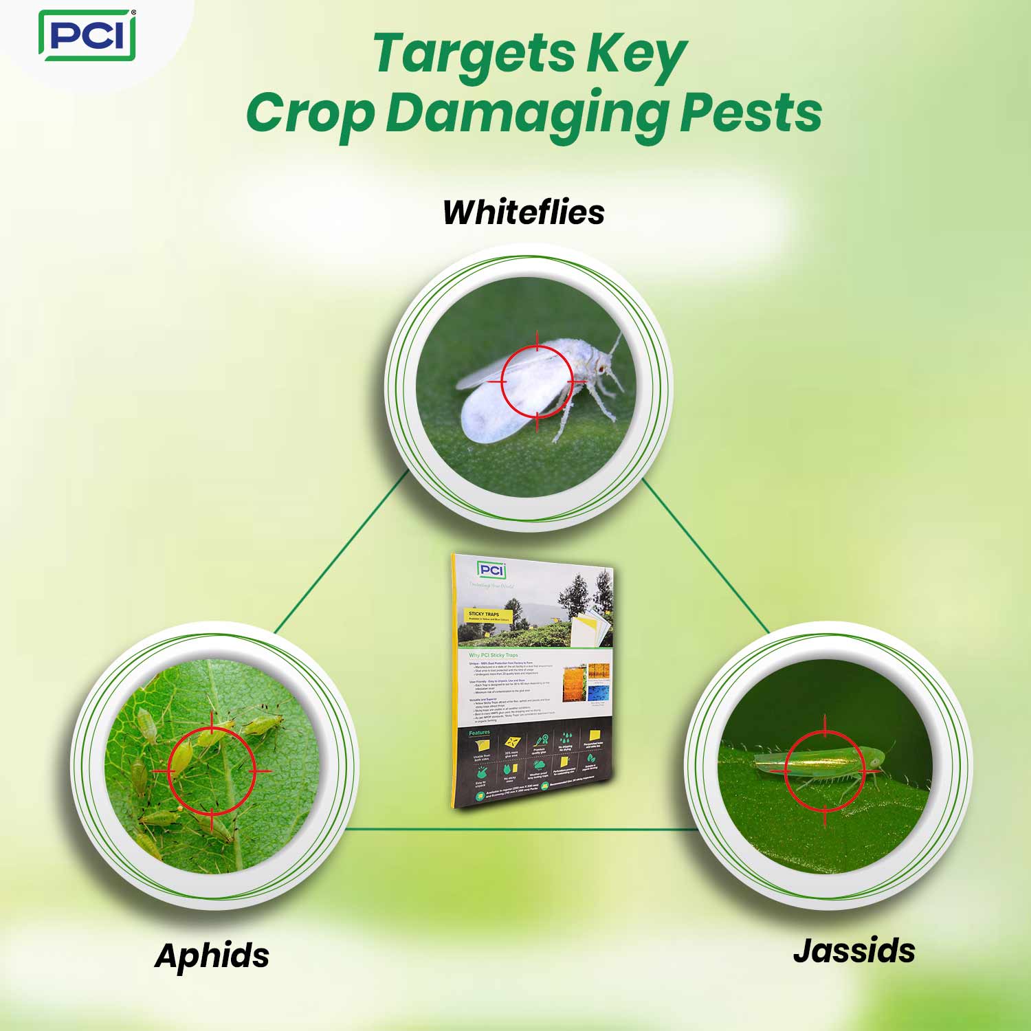 - Targets Common Crop Pests: Effectively traps whiteflies, aphids, and jassids, helping protect your crops without chemicals.